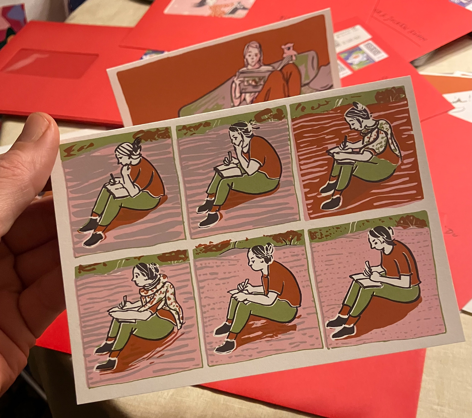 Es gibt Bastelpapiere, Spielkarten, Dinge zum Wundern und Postkarten.